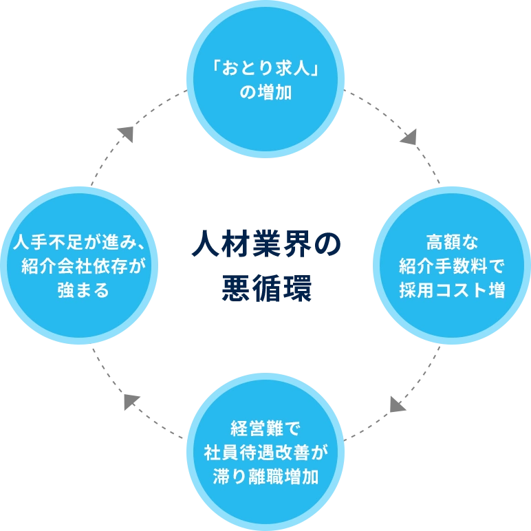 人材業界の現状には、紹介会社によるおとり求人の掲載や、高額な紹介手数料、